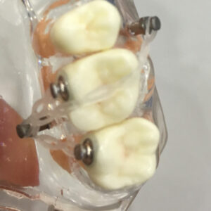 インプラントアンカーを用いた矯正は固定源が動かないため(絶対的固定源)となっているために、歯列全体の遠心移動、歯の圧下、臼歯の近遠心または頬舌側移動などに用いられ、なくてはならない技術になってきています。また補綴前のアップライト、圧下、傾斜移動、歯体移動などのMTM(minor teeth movement)にも多用されています。デンタルインプラントとは違い矯正用のアンカースクリューは細く短く、骨とは結合しない構造になっています。しかし、歯の根と根の狭いところに入れることが多く、デンタルインプラントの埋入とは違った、知識や技術が必要になります。
