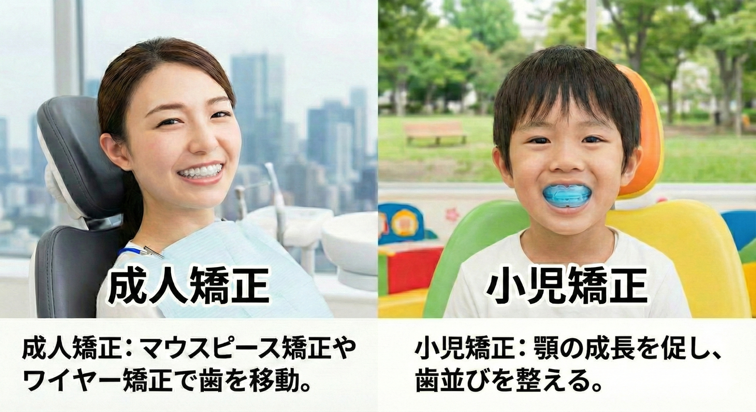 大人の矯正と子供の矯正の最大の違いは **「成長を利用できるかどうか」**です。