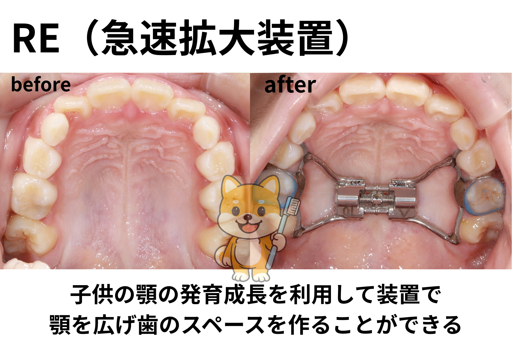 ・将来の抜歯リスクを下げる:早期に顎を適切な大きさに広げる事で、永久歯が並ぶ「椅子」を確保できます。