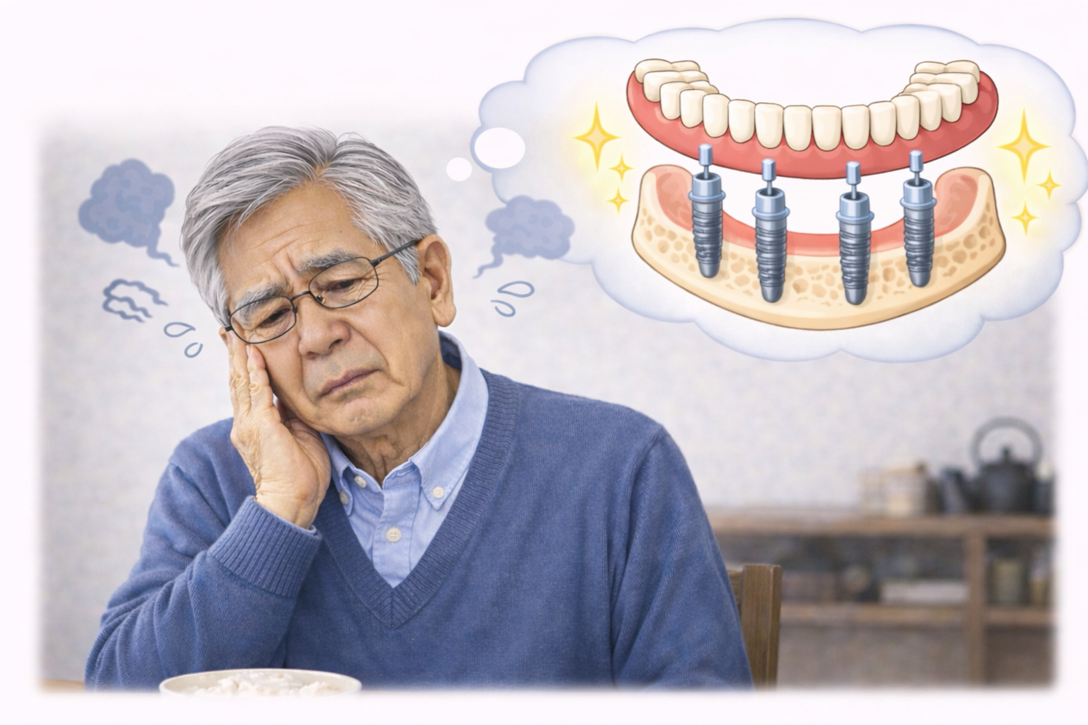 「長年入れ歯を使っているけれど、最近なんだか食事がしにくい……」 「入れ歯がガタついて、人前で話すのが怖くなってきた」 「インプラントに興味はあるけれど、手術や痛みが不安で踏み出せない」