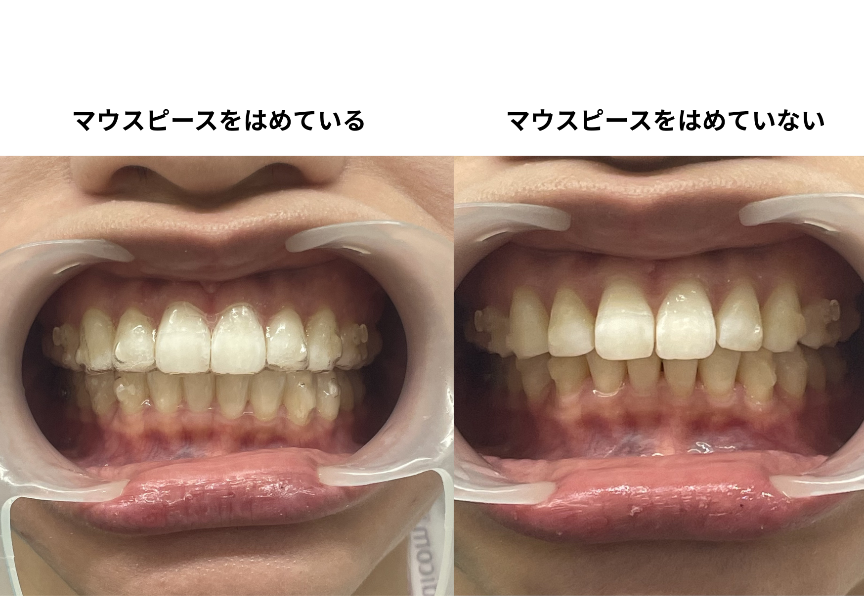 透明なマウスピースなので良くみてみないとマウスピースがついているかどうかはわかりません。