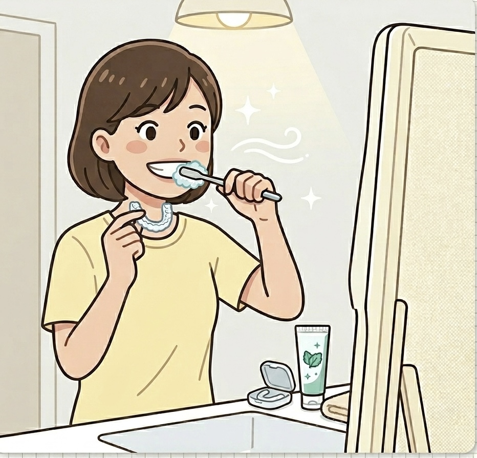 せめて入念に「水うがい」をしてから装置を戻しましょう。